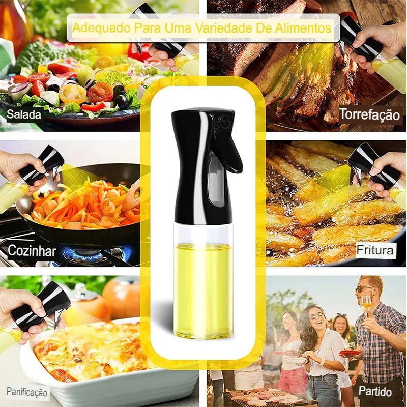 Não desperdice mais óleo, azeite e vinagre na hora de temperar saladas entre outras refeições, o spray spray é super prático para o seu dia a dia. Possui um jato sutil e na quantidade ideal, também evitando que você encante seu alimento, deixando-o com menos gordura e mais sabor.